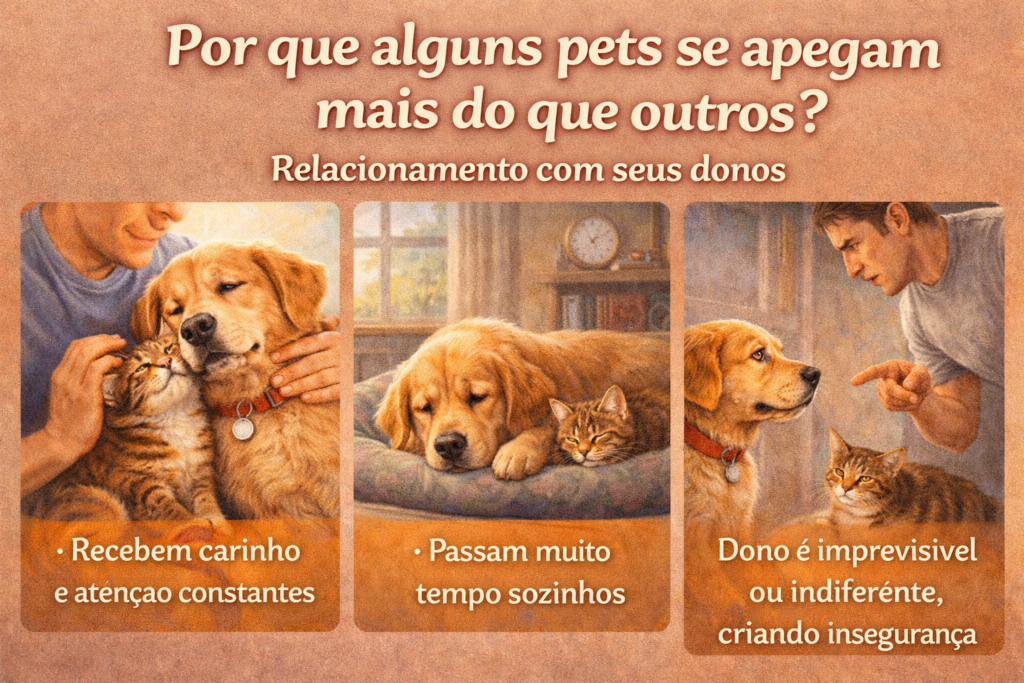 Por outro lado, pets que passaram por abandono ou situações difíceis podem se apegar ainda mais — como forma de encontrar segurança.