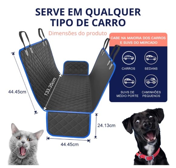 Não deixe que preocupações com a limpeza estraguem seus momentos juntos, invista agora nessa Capa Pet Veicular Impermeável incrível, desfrute de viagens e passeios sem estresse e gere momentos e memórias marcantes com seu melhor amigo ao seu lado!